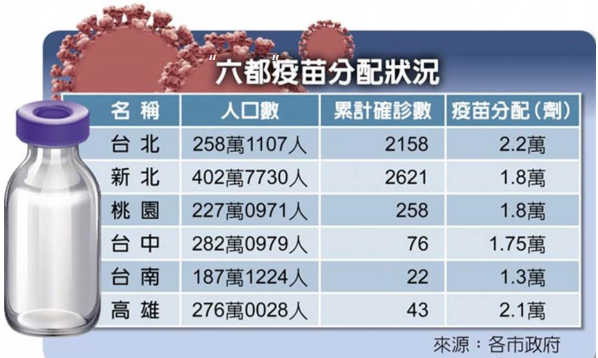 疫苗分配 台北 - ç¶²å³ é³æä¸çæ°åç´°æ¼¢ ç«èåé æ¨æºææ®ä¸å¿æ©èªªæ çæ´» èªç±æå ±é»åå ± : 看到新聞說 最新一批az疫苗分配 台北市分配到2.2萬劑 新北市分配到1.8萬劑 桃園市分配到1.8萬劑 高雄市分配到2.1萬劑(補上) 大家覺得這個疫苗分配 合理嗎?